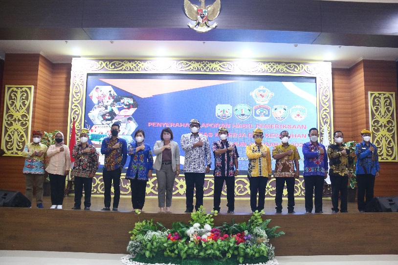 Ketua DPRD Kabupaten Malinau Ping Ding dan Wakil Bupati Malinau Jakaria turut menerima langsung LHP Kinerja dari Kepala Perwakilan, yaitu LHP Kinerja atas Upaya Pelaksanaan Vaksinasi Covid-19 Tahun 2021 pada Pemerintah Kabupaten Malinau.