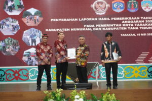 Didampingi oleh Kepala Subauditorat Kalimantan Utara Surya Hadi Saputra, Kepala Perwakilan BPK Kaltara menyerahkan secara langsung Laporan Hasil Pemeriksaan (LHP) atas Laporan Keuangan Pemerintah Kota Tarakan Tahun Anggaran 2022 kepada Wakil Ketua DPRD Kota Tarakan Yulius Dinandus dan Wali Kota Tarakan Khairul. Setelah melalui serangkaian kegiatan pemeriksaan, Opini Wajar Tanpa Pengecualian (WTP) diberikan BPK atas Laporan Keuangan Pemerintah Kota Tarakan Tahun Anggaran 2022.