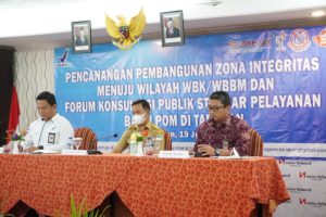 Bertempat di Hotel Swiss Bell Tarakan, Selasa 19 Juli 2022 diselenggarakan Kegiatan “Pencanangan Pembangunan Zona Integritas Menuju Wilayah Bebas dari Korupsi (WBK) dan Wilayah Birokrasi Bersih dan Melayani (WBBM) serta Forum Konsultasi Publik Standar Pelayanan Publik Balai POM di Tarakan”. Kegiatan yang dilaksanakan oleh Balai POM Tarakan dengan mengundang BPK Kaltara sebagai narasumber untuk menyampaikan success story pelaksanaan Reformasi Birokrasi (RB) dalam membangun Zona Integritas (ZI) menuju WBK dan WBBM. Kegiatan tersebut dihadiri oleh Sestama BPOM, Deputi IV BPOM, Kepala Perwakilan BPK Kaltara, Kepala Balai BPOM Kota Tarakan, Asisten Bidang Pemerintahan Provinsi Kaltara, Tokoh Mayarakat H. Udin Hianggo, serta para Stakeholders Balai POM (Instansi pemerintah, organisasi profesi, pelaku usaha, dan media) secara daring dan luring.