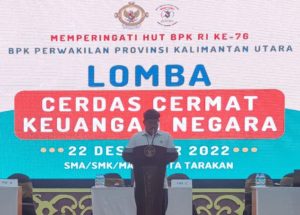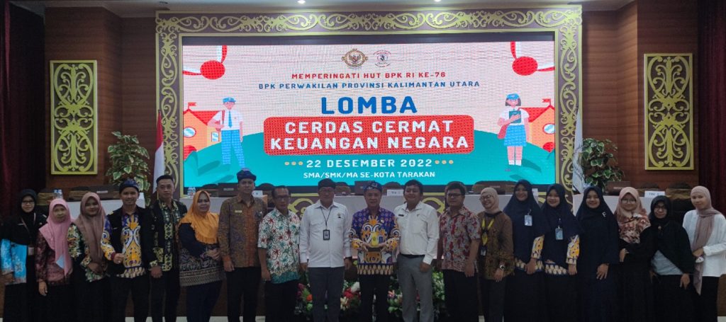 Kamis, 22 Desember 2022, BPK Kaltara bersama Dinas Pendidikan dan Kebudayaan Provinsi Kalimantan Utara menggelar Kegiatan Promosi Layanan Publik dan Lomba Cerdas Cermat Pengelolaan Keuangan Negara. Kegiatan yang diselenggarakan Rangka Memperingati Hari Ibu dan HUT BPK Ke 76 ini bertujuan untuk mempromosikan layanan publik BPK dan mencerdaskan kehidupan bangsa.