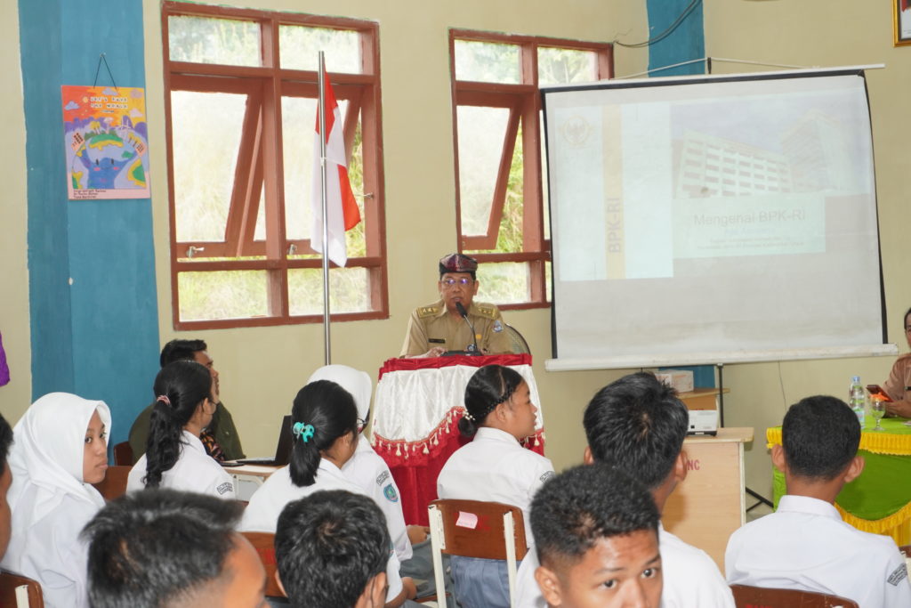 Hadir mewakili Kepala Perwakilan BPK Kaltara, Kepala Subbagian Humas, Ajie Amiseno, menyampaikan materi pengenalan BPK dan Perpustakaan BPK Kaltara. Selain itu, Ajie juga mempromosikan nilai-nilai dasar BPK, peningkatan literasi, minat baca, dan riset di bidang pengelolaan keuangan negara. “nilai dasar BPK salah satunya adalah integritas dimana kejujuran adalah modal kesuksesan utama bagi suatu bangsa. Sedangkan profesionalisme tidak akan bisa dibentuk bila tidak memiliki keilmuan yang cukup. Maka kejujuran dan gemar membaca adalah harga mati bagi generasi penerus bangsa” ujarnya. Ajie juga mendorong agar pelajar SMAN 1 Bunyu berpartisipasi dalam riset untuk kemajuan pengelolaan keuangan negara melalui kegiatan ekstrakulikuler seperti Karya Ilmiah Remaja (KIR). Pada kesempatan itu, Ajie juga menyampaikan apresiasinya atas prestasi SMAN 1 Bunyu sebagai finalis Lomba Cerdas Cermat Pengelolaan Keuangan Negara Tahun 2022 dan berharap dapat menjuarai lomba tersebut di Tahun 2023.