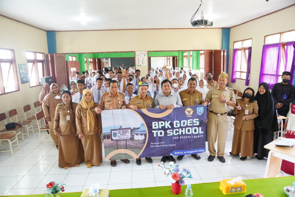 Selasa, 21 Februari 2023, BPK Kaltara bersama dengan Dinas Pendidikan Provinsi Kalimantan Utara menggelar BPK Goes to School pada SMAN 1 Bunyu Kabupaten Bulungan. Kegiatan ini bertujuan untuk mendekatkan BPK di kalangan pelajar, menularkan nilai-nilai dasar BPK, serta meningkatkan literasi, minat baca dan riset di bidang pengelolaan keuangan negara. Acara diikuti oleh Kepala Bidang PSMA, Sekretaris Dinas Pendidikan, dan Kepala Cabang Dinas Pendidikan Provinsi Kalimantan Utara serta kepala sekolah, guru, dan pelajar SMAN 1 Bunyu.