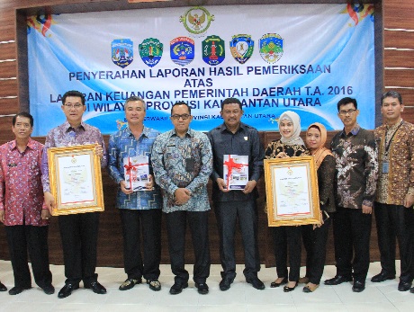 Selasa, 31 Mei 2017, Kepala Perwakilan BPK Provinsi Kalimantan Utara menyerahkan Laporan Hasil Pemeriksaan atas Laporan Keuangan Pemerintah Daerah Tahun Anggaran 2016 (LHP atas LKPD TA 2016) lima Pemerintah Daerah (Pemda) di wilayah Kalimantan Utara. Kelima Pemda tersebut terdiri atas satu kota dan empat kabupaten, yaitu Pemerintah Kota Tarakan, Pemerintah Kabupaten (Pemkab) Bulungan, Pemkab Nunukan, Pemkab Malinau, dan Pemkab Tana Tidung.
