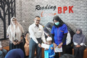 Selanjutnya, Dharma Wanita BPK Kaltara menyerahkan Bantuan Pendidikan Murid (BPM) pada penerima bantuan. Selain itu, Dharma Wanita BPK Kaltara juga menyerahkan cindermata kepada penerima bantuan berupa alat tulis. Acara ditutup dengan foto bersama.
