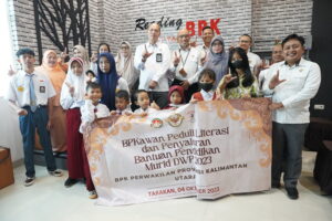 Bertempat di Perpustakaan BPK Kaltara, Rabu 4 Oktober 2023, Dharma Wanita BPK Kaltara bersama BPK Kaltara dan Komunitas Literasi menyelenggarakan kegiatan BPKawan Peduli Literasi. Acara yang dihadiri oleh Kepala Perwakilan, Wakil Ketua Dharma Wanita BPK Kaltara, seluruh pejabat struktural dan fungsional, pengurus dan anggota Dharma Wanita BPK Kaltara, serta Komunitas Literasi ini bertujuan untuk memajukan pendidikan. peningkatan literasi, dan penguatan Budaya Kerja BPK yaitu GENTAMU (Giat, Empati, Netral, Tegas, Assertif, Mandiri, Unggul).