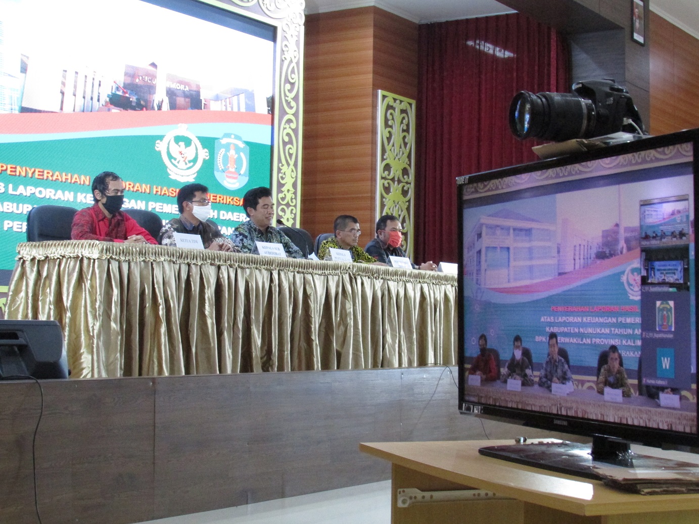 Mengakhiri rangkaian kegiatan pemeriksaan atas Laporan Keuangan Pemerintah Daerah (LKPD) Tahun 2019, pada hari Jumat 12 Juni 2020 BPK Perwakilan Provinsi Kalimantan Utara menyerahkan Laporan Hasil Pemeriksaan (LHP) atas LKPD Kabupaten Nunukan Tahun 2019 yang dilakukan secara virtual melalui video conference. Agus Priyono, S.E., M.Si, Ak., CA., CSFA selaku Kepala Perwakilan menyerahkan LHP kepada Ketua DPRD Kabupaten Nunukan, Rahma Leppa dan kepada Bupati Nunukan, Hj. Asmin Laura Hafid, S.E., M.M. dengan dihadiri oleh Sekretaris Daerah beserta segenap pimpinan OPD di lingkungan Pemerintah Kabupaten Nunukan.