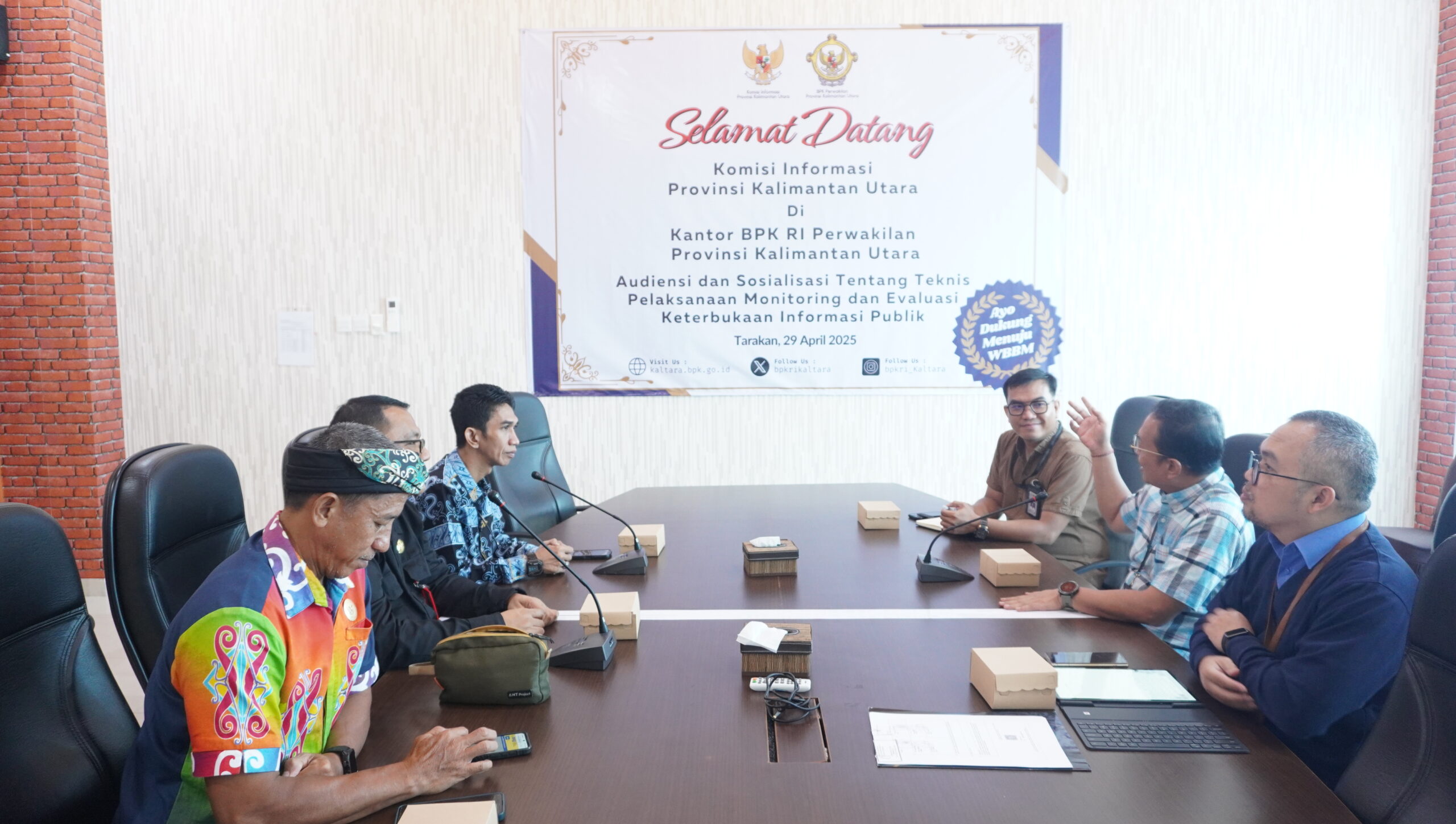 Tarakan, 29 April 2025 — Komisi Informasi (KI) Provinsi Kalimantan Utara melakukan audiensi dengan Badan Pemeriksa Keuangan (BPK) RI Perwakilan Provinsi Kalimantan Utara, Selasa (29/4/2025). Pertemuan ini membahas penguatan implementasi keterbukaan informasi publik, kesiapan Pejabat Pengelola Informasi dan Dokumentasi (PPID), serta pentingnya sinergi melalui Forum Kehumasan antar instansi di daerah.