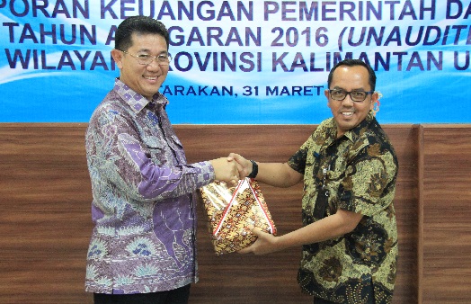 Kepala Perwakilan BPK Provinsi Kalimantan Utara, Tornanda Syaifullah, menerima langsung LKPD TA 2016 Unaudited dari Pemerintah Provinsi Kalimantan Utara, Pemerintah Kabupaten (Pemkab) Malinau, Pemkab Nunukan, Pemerintah Kota Tarakan, dan Pemkab Bulungan, yang diserahkan masing-masing oleh Gubernur Kalimantan Utara Irianto Lambrie, Bupati Malinau Yansen TP, Bupati Nunukan Asmin Laura Hafid, Walikota Tarakan Sofian Raga, dan Bupati Bulungan Sudjati. Kelima Laporan Keuangan tersebut diserahkan kepada BPK Perwakilan Provinsi Kalimantan Utara pada 31 Maret 2017.