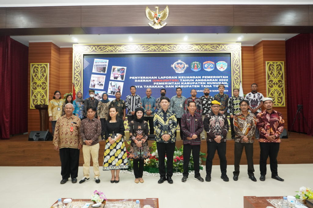 Jumat 10 Maret 2023, Bertempat di Gedung Auditorium BPK Kaltara, Pemkab Nunukan, Pemkot Tarakan, dan Pemkab Tana Tidung menyerahkan Laporan Keuangan Pemerintah Daerah (LKPD) Tahun Anggaran Tahun 2022. LKPD tersebut selanjutnya akan diperiksa oleh BPK Kaltara di Tahun 2023 mulai dari tanggal penyerahan sampai dengan maksimal 60 hari kedepan.