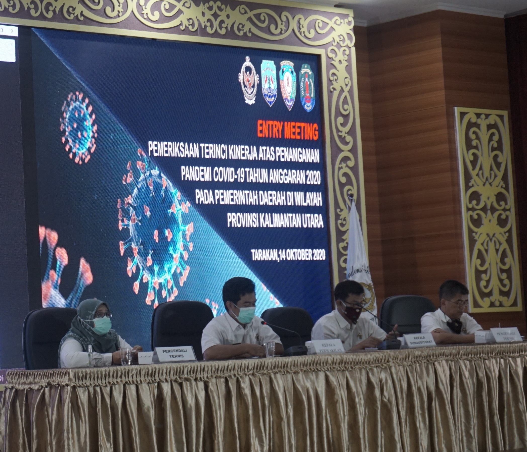 Setelah melakukan Pemeriksaan Pendahuluan pada bulan September 2020, BPK Perwakilan Provinsi Kalimantan Utara pada bulan Oktober 2020 mulai melakukan kegiatan Pemeriksaan Kinerja Terinci atas Penanganan Pandemi Covid-19 Tahun Anggaran 2020 pada pemerintah daerah di wilayah Provinsi Kalimantan Utara. Sebagai pembuka dari kegiatan tersebut dilaksanakan Entry Meeting Pemeriksaan Kinerja Terinci atas Penanganan Pandemi Covid-19 Tahun Anggaran 2020, pada Rabu, 14 Oktober 2020.