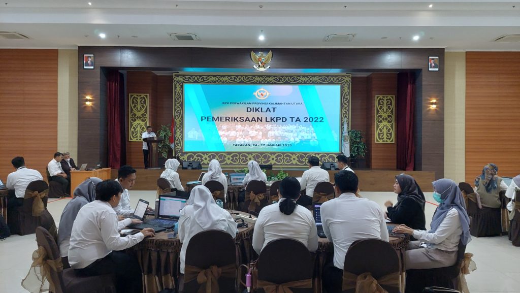 Selasa, 24 Januari 2023, BPK Kaltara kembali Gelar Diklat Pemerikaan atas Laporan Keuangan Pemerintah Daerah (LKPD) di Gedung Auditorium BPK Kaltara. Kegiatan ini bertujuan agar Kualitas Hasil Pemeriksaan atas LKPD semakin baik dan menyelaraskan strategi pemeriksaan secara nasional. Acara dibuka oleh Kepala Sekretariat Perwakilan, Donisius Yudianto dan diikuti oleh seluruh pemeriksa BPK Kaltara.