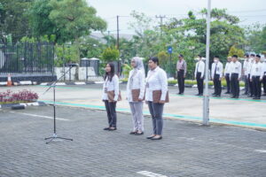 Bertindak selaku Inspektur Upacara adalah Kepala Subbagian Keuangan Rita Anugrahwati, Perwira Upacara Koordinator Keamanan Khusaeni, Komandan Upacara Staf Umum Siti Nurlina, Komandan Pleton Moedji, Pengibar Bendera Akbar, Riki, dan Rays, Pembawa Acara Erlik Suciningtyas, Pembaca Doa, Ratih Rahmayati Oktavia, Pembaca Naskah  Anin Pratika, Siti Nur Kholisah, dan Etniati Bara’Lembang, serta ajudan inspektur Nur Aini.